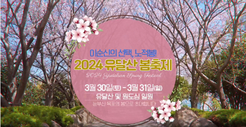 2024 유달산 봄축제 | 유달산의 봄, 이순신의 재탄생! 2024년 3월 30(토) ~ 3월 31일(일) /2일간 유달산 일원 주최 : 목포시 | 주관 : 목포시 축제추진위원회 문 의 : 목포시 관광과 061-270-8441, 8432
