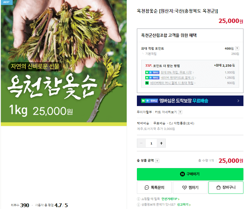 옻순 온라인 구매 시 옻순 채취 수량에 따라 순차적으로 발송된다고 합니다.